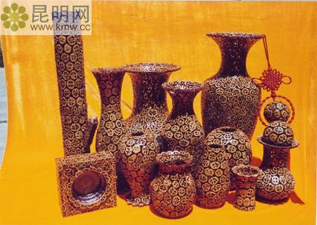 采用漾濞野生鐵核桃果果皮(殼)為原料,經(jīng)多道工序全手工制作,完整的保留了核桃的原紿外形和花紋,具有天然的美感。主要有花瓶、臺(tái)燈、煙灰缸、紙巾盒、筆筒等大類。