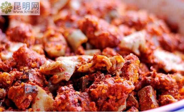 采用豬排、豬下水配以“雪山清”酒腌制而成,色、香、味皆美,,深受吃貨喜愛(ài),曾榮獲大理州地方產(chǎn)品金花獎(jiǎng)。