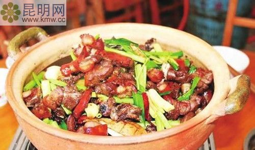 當(dāng)?shù)亟谢馃罚瑤さ淖詈贸裕笤跍佒校渖细鞣N蔬菜和葷菜,就是一鍋美味的狗肉火鍋。