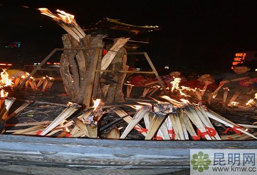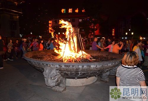 村村寨寨的大火把一大早就豎起來(lái)了,家家戶(hù)戶(hù)門(mén)前的小火把也立好了。當(dāng)日落西山,夜幕降臨,人們從四面八方擁入巍山古城"逛火把"。屆時(shí)古城內(nèi)主要街道特別是南詔古街上火把齊燃,爆竹喧天,火樹(shù)銀花,形成"廣場(chǎng)點(diǎn)燃大火把、家家門(mén)前豎火把、人人手中舉火把"的盛大景觀(guān)。