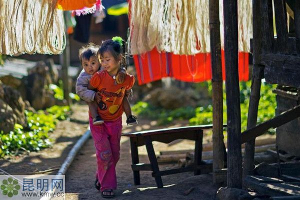 這位小佤妹背著妹妹走過來向我問好,雖然有點害羞,但她一口標準的普通話讓我驚奇。(作者:徐龍)