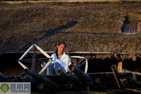 這位佤妹在自己家的二樓平臺上悠閑的紡著紗線,在日落光線的映襯下顯得樸實而端莊。