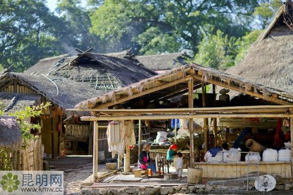 原生態佤族茅草屋民居,是桿欄式竹木樓。