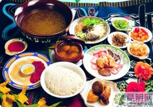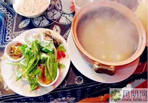 四是主食,一套米線配料就能有十幾種,包含了許多云南的土特產。蒙自的米線用料好,柔糯適口,絕非干米線可比;配料考究,調味豐富,制作精細,湯味香醇。
