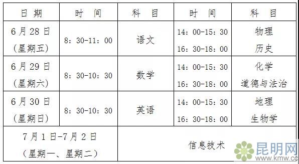 2020年7月25、26、27日組織語文、數(shù)學、英語、物理、化學、道德與法治、歷史、地理、生物學考試;7月28、29日組織信息技術(shù)考試;體育科目考試在6月30日前完成;音樂與美術(shù)考試由學校在規(guī)定的時間內(nèi)組織完成。