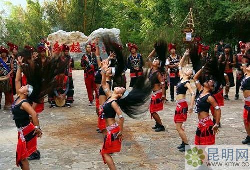 佤族崇拜紅色和黑色,服飾多數(shù)以黑為質(zhì),以紅為飾,基本上還保留著古老的山地民族特色。