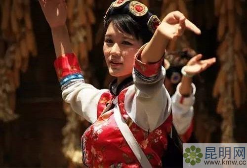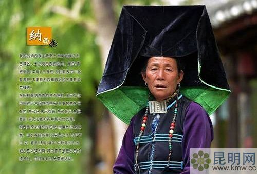 寧蒗納西婦女穿短衫,下系長(zhǎng)可及地的百褶裙,披羊皮,裹青布頭巾,戴金、銀、玉石等制作的耳環(huán)和手鐲,并喜歡束“羊皮帶”或“圍腰帶”。