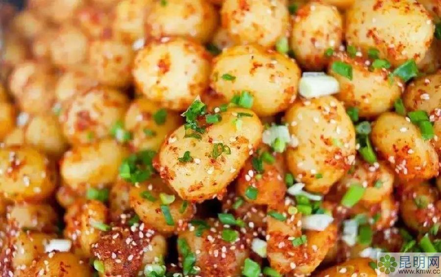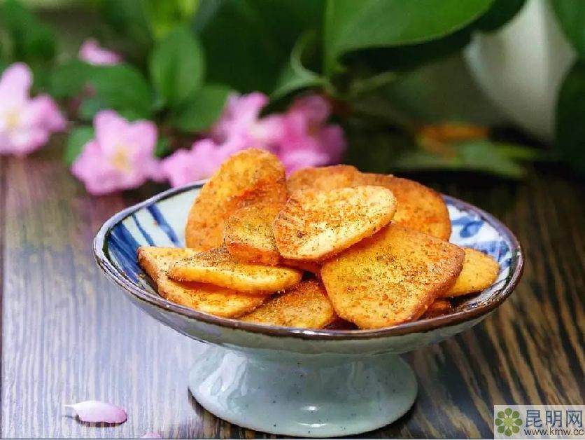 在云南各個地方的大街小巷你總能找到炸洋芋的身影,人們會圍坐在小攤旁,看著菜籽油炸得金黃的土豆塊若有所思,最后端著土豆蘸著辣椒面,吃得津津有味。一份炸洋芋,讓身處云南的你在哪兒都能感受到家鄉的味道。