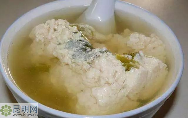 在云南人的食譜里,菜豆腐是一道常見的菜品,在一些經(jīng)營粗茶淡飯的農(nóng)家樂或者餐館里很常見。菜豆腐也叫連渣撈,整個(gè)菜就是連湯帶渣撈起來一起吃。