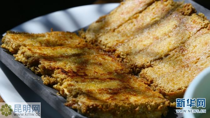 嫩豆腐經(jīng)火烤,逐漸膨脹,烤至兩面金黃,咬破脆皮,只見熱氣從無數(shù)蜂窩狀小孔中散出,香味撲鼻。再配以蘸料,美味無比。