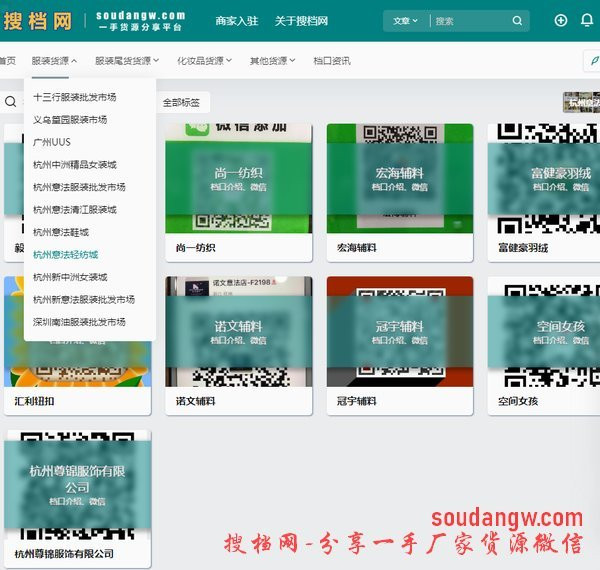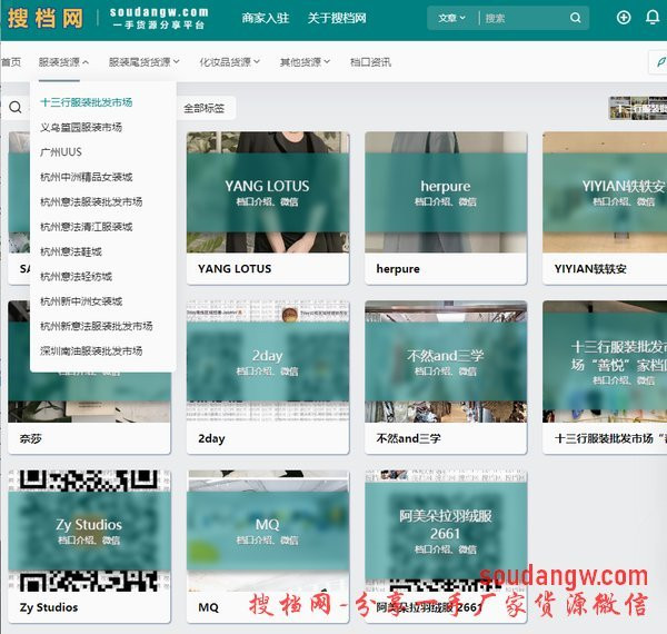 當(dāng)然,如果想足不出戶的就完成以上這些工作,也是有辦法的。 專業(yè)的人做專業(yè)的事,比如搜檔網(wǎng),就是一個搜集和整理了廣州杭州深圳遼寧常熟數(shù)以萬家的服裝批發(fā)檔口老板微信的網(wǎng)站。